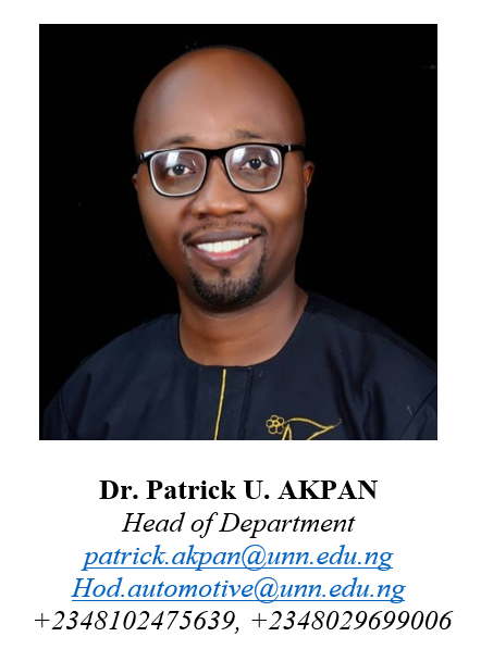 On behalf of the University, I am pleased to welcome you to the Department of Automotive Engineering. The establishment of this department reflects the institution’s strategic commitment to advancing innovation in mobility, transportation systems, and manufacturing technologies in Nigeria and across the globe. The programme was conceived to address the growing national need for specialized expertise in automotive systems, sustainable transport technologies, vehicle design, safety engineering, and policy development. As a new department, we are systematically building our capacity in line with national regulatory standards, institutional goals, and global best practices.